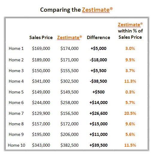 In my sample, 70% of the Zestimates were within 10% of the sales price which does not sound like a lot. But in dollars that 10% difference between the Zestimate and the sales price translated into between $500 and $15,000. When I sit down with sellers and discuss a projected sales price they expect me to be a lot closer than 10% or $15,000. Thankfully, my projections are much closer. As they are usually within 2% of the final sales price.