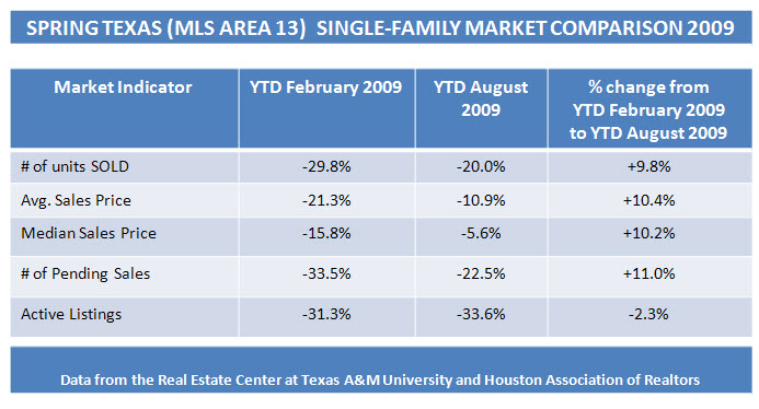 For everyone else, let’s get back to the numbers and find out how the Spring Texas real estate market is doing. In comparison to February 2009, the real estate market is doing better and continues to improve as the year progresses. But the real estate market is still down from last year with 20% less units sold than in 2008.