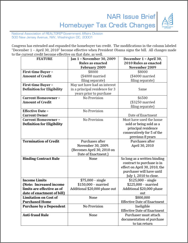 Below is a summary of the home buyer tax credit provided by the National Association of REALTORS®: