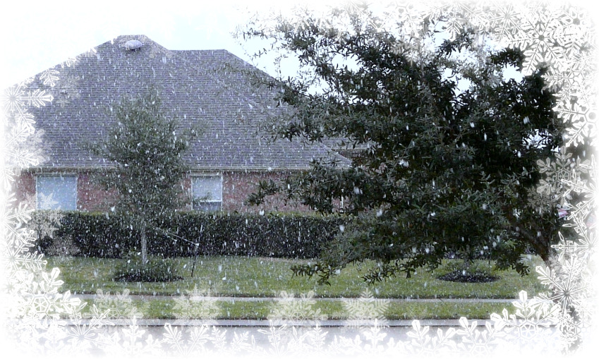 This evening the snowfall has stopped. The streets and sidewalks are wet but other than a few remaining snow flakes there is no accumulation. There is not enough snow to build a fort or have a snow ball fight nor is there enough snow to make a snowman or a snow angel and for many people in Spring Texas I am sure it is a disappointment. But not for me. I experienced too many cold and blistery winters growing up in the Midwest and I don’t want to experience any more.